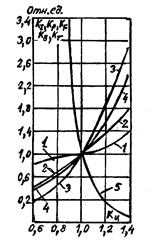 С учетом (2) и (3) может быть рассчитана зависимость подводимого напряжения от уровня таких относительных величин, как активная Кр, реактивная