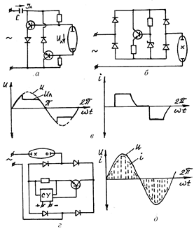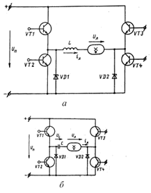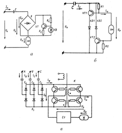 Рис.27. Принципиальные схемы полупроводниковых преобразователей частоты: а – дроссельный; б – двухтактный; в, г - коммутационные