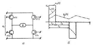 Рис.30. Полумостовая (а) и мостовая (б) схемы инвертора напряжения