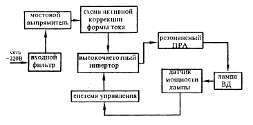 Рис.28. Структурная блок-схема электронного ПРА для ламп высокого давления
