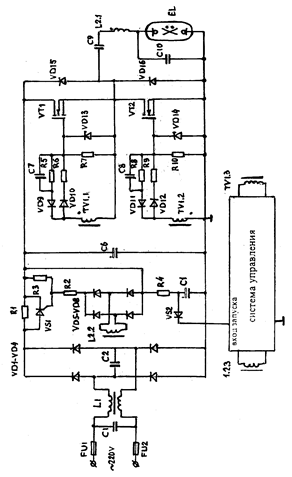 Рис.31. Схема электронного ПРА для лампы ДРЛ-250 |