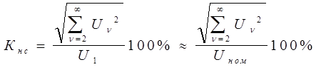 Несинусоидальность напряжения сети характеризуется коэффициентом несинусоидальности (искажения) кривой напряжения, который определяется по формуле: