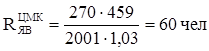 P=N/(Pпр CJ1 +PCJ 1 BC ), ед./чел.,