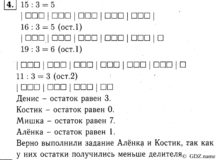 Главная / Готовые домашние задания (ГДЗ) / 3 класс / Математика / Демидова, Козлова / 1.28 Деление с остатком (стр. 60) Задание: 4