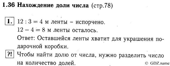 Ответ на 1.36 Нахождение доли числа (стр. 78) Задание: 1