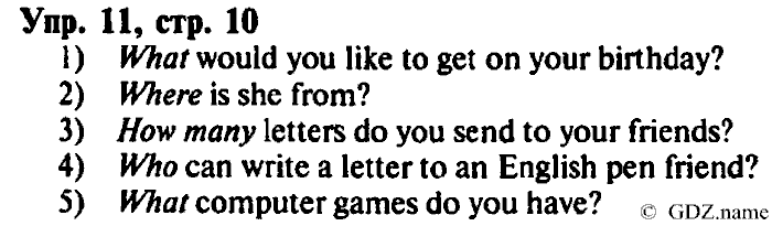Главная / Готовые домашние задания (ГДЗ) / 4 класс / Английский язык / Биболетова, Денисенко / Work Book. Ключи к заданиям рабочей тетради. Unit №2, Задание: 11