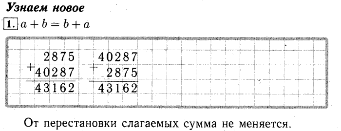 Главная / Готовые домашние задания (ГДЗ) / 4 класс / Математика / Рудницкая, Юдачева / Переместительные свойства сложения и умножения Задача: 1