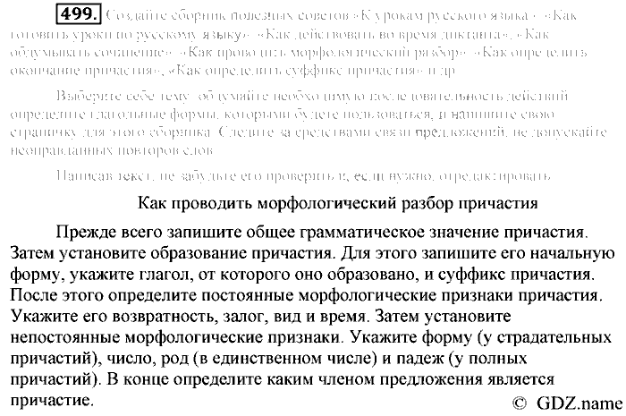 Главная / Готовые домашние задания (ГДЗ) / 6 класс / Русский язык / Разумовская, Львова / задача: 499