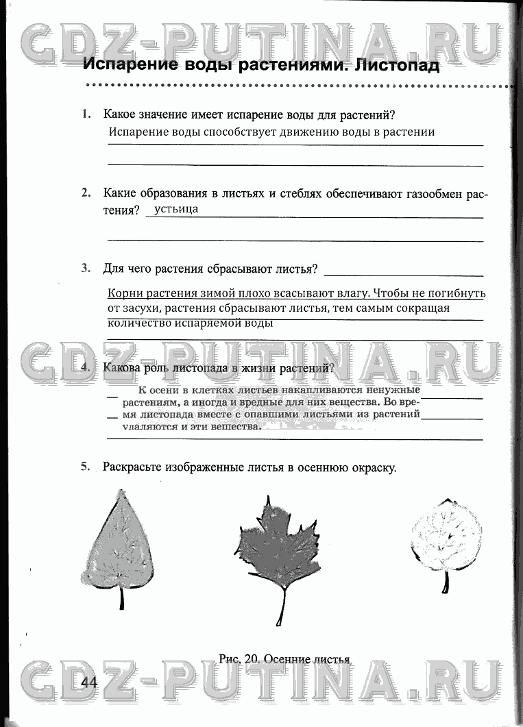 Главная / Готовые домашние задания (ГДЗ) / 6 класс / Биология / Преображенская / задание: 44