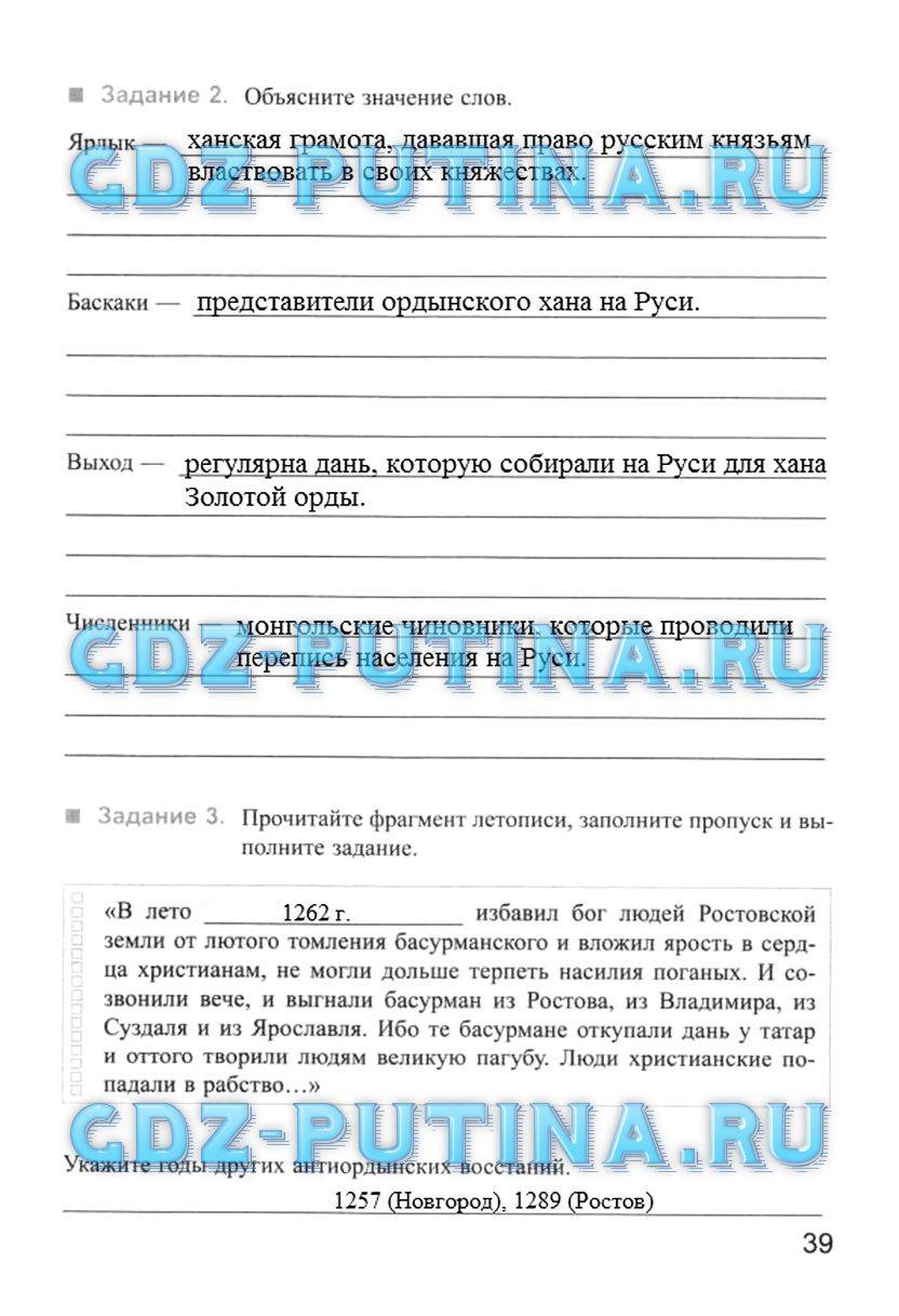 Главная / Готовые домашние задания (ГДЗ) / 6 класс / История / Симонова Е.В. / задание: 39