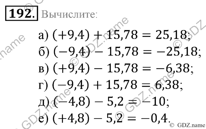 Ответ на §6. Числовые выражения, содержащие знаки +, - Задание: 192