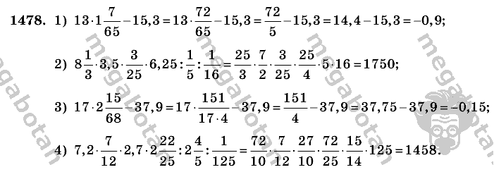 Главная / Готовые домашние задания (ГДЗ) / 6 класс / Математика / Виленкин, Жохов / задание: 1478