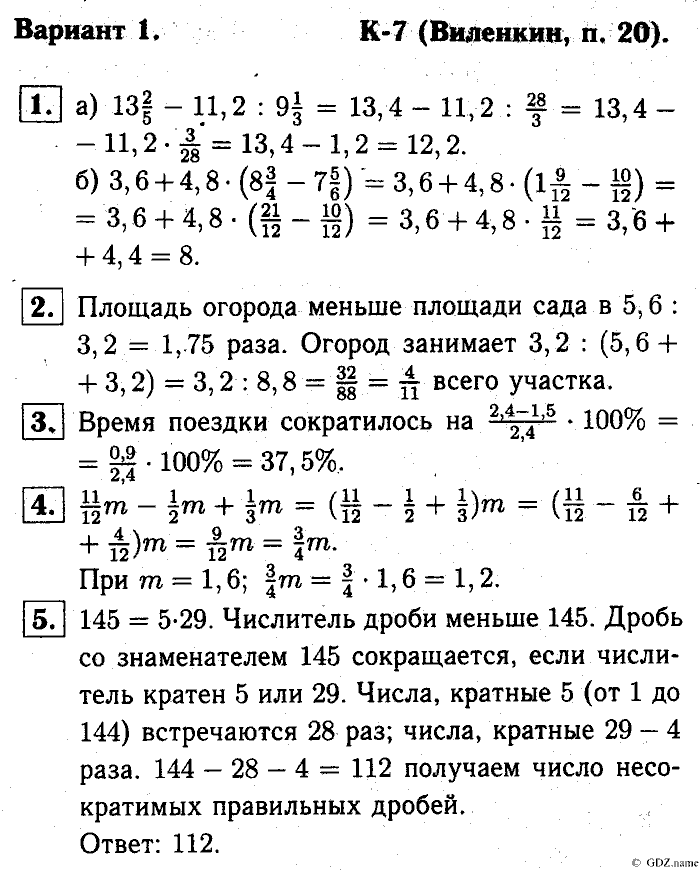 Главная / Готовые домашние задания (ГДЗ) / 6 класс / Математика / Чесноков, Нешков / K-7 Задание: Вариант №1