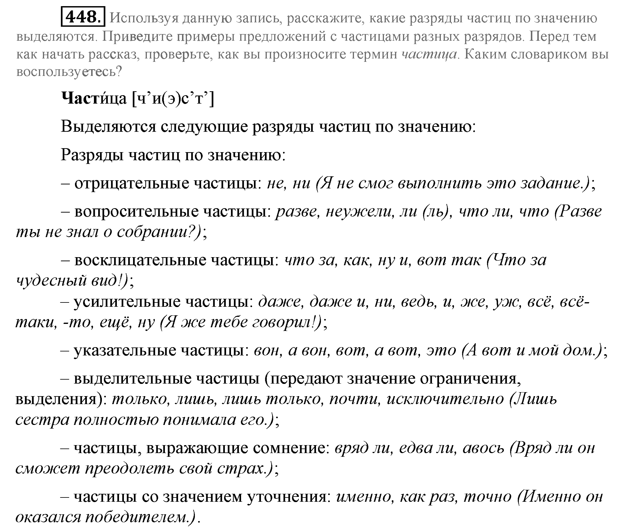 Главная / Готовые домашние задания (ГДЗ) / 7 класс / Русский язык / М.М. Разумовская / задача: 448