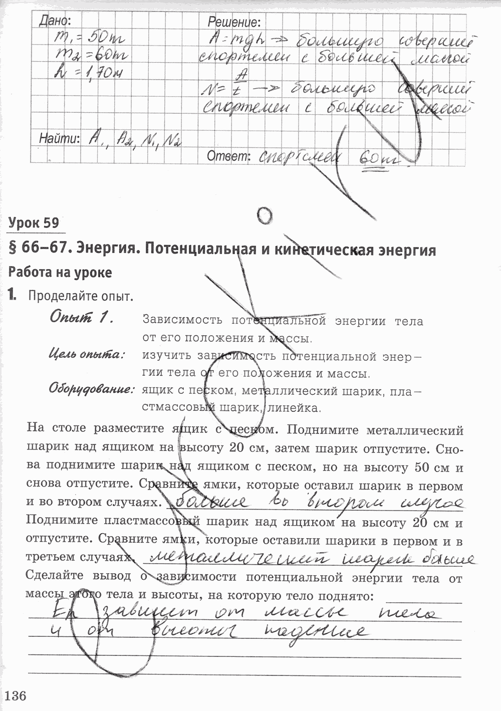 Главная / Готовые домашние задания (ГДЗ) / 7 класс / Физика / Минькова, Иванова / задача: стр. 136