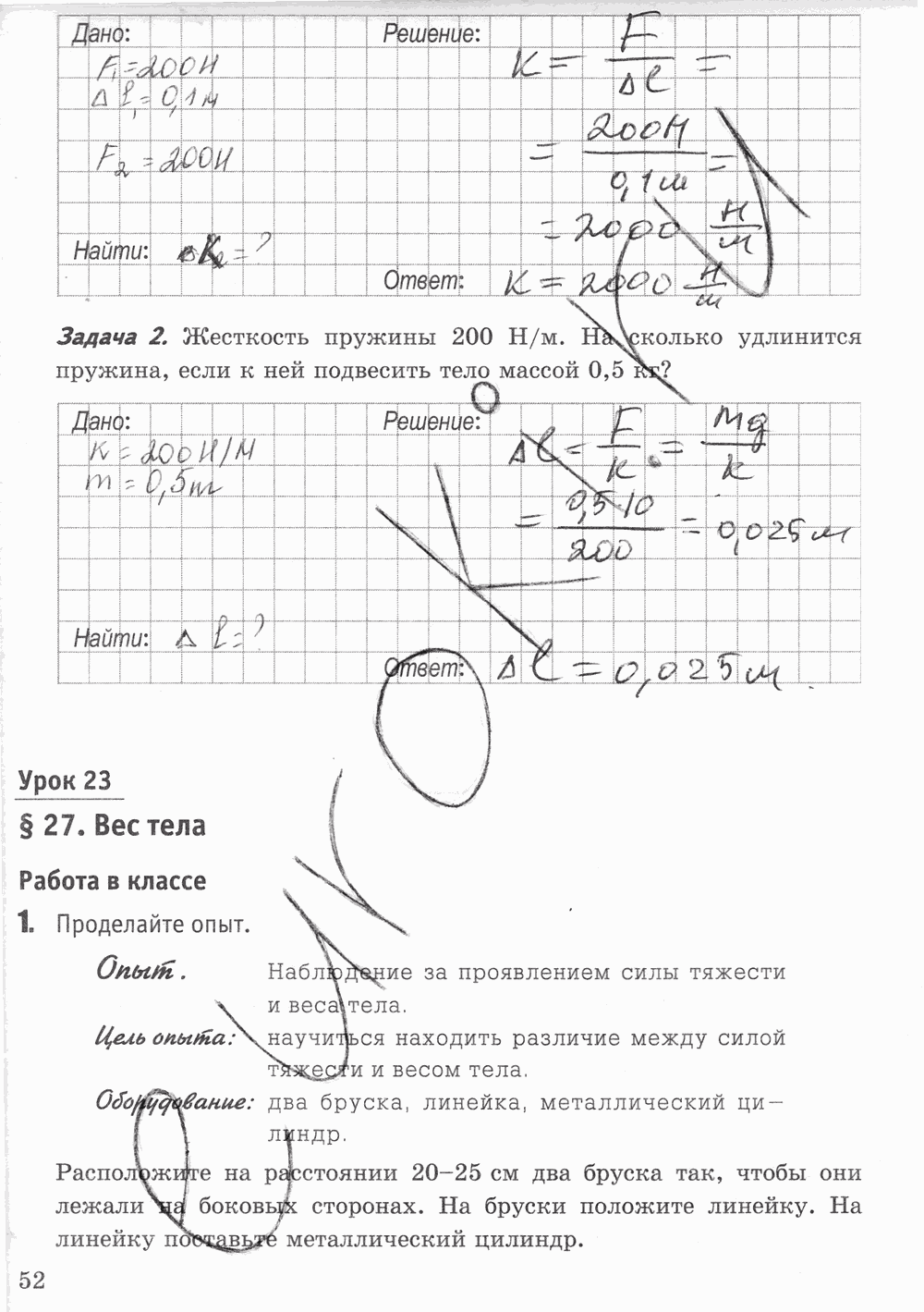 Главная / Готовые домашние задания (ГДЗ) / 7 класс / Физика / Минькова, Иванова / задача: стр. 52
