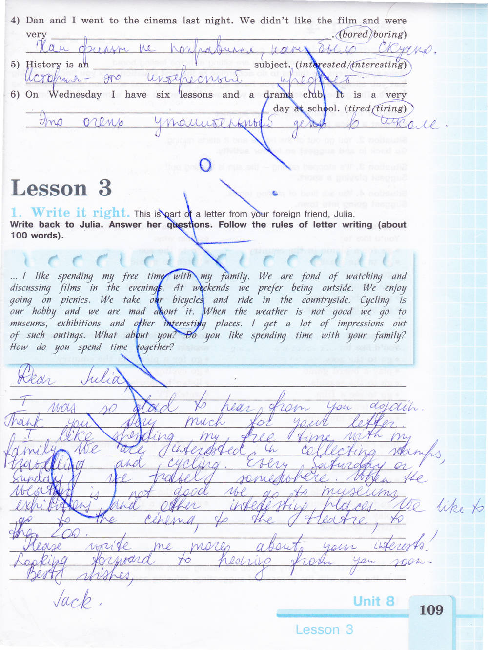 Главная / Готовые домашние задания (ГДЗ) / 7 класс / Английский язык / Кузовлев В.П. / задание: Стр. 109