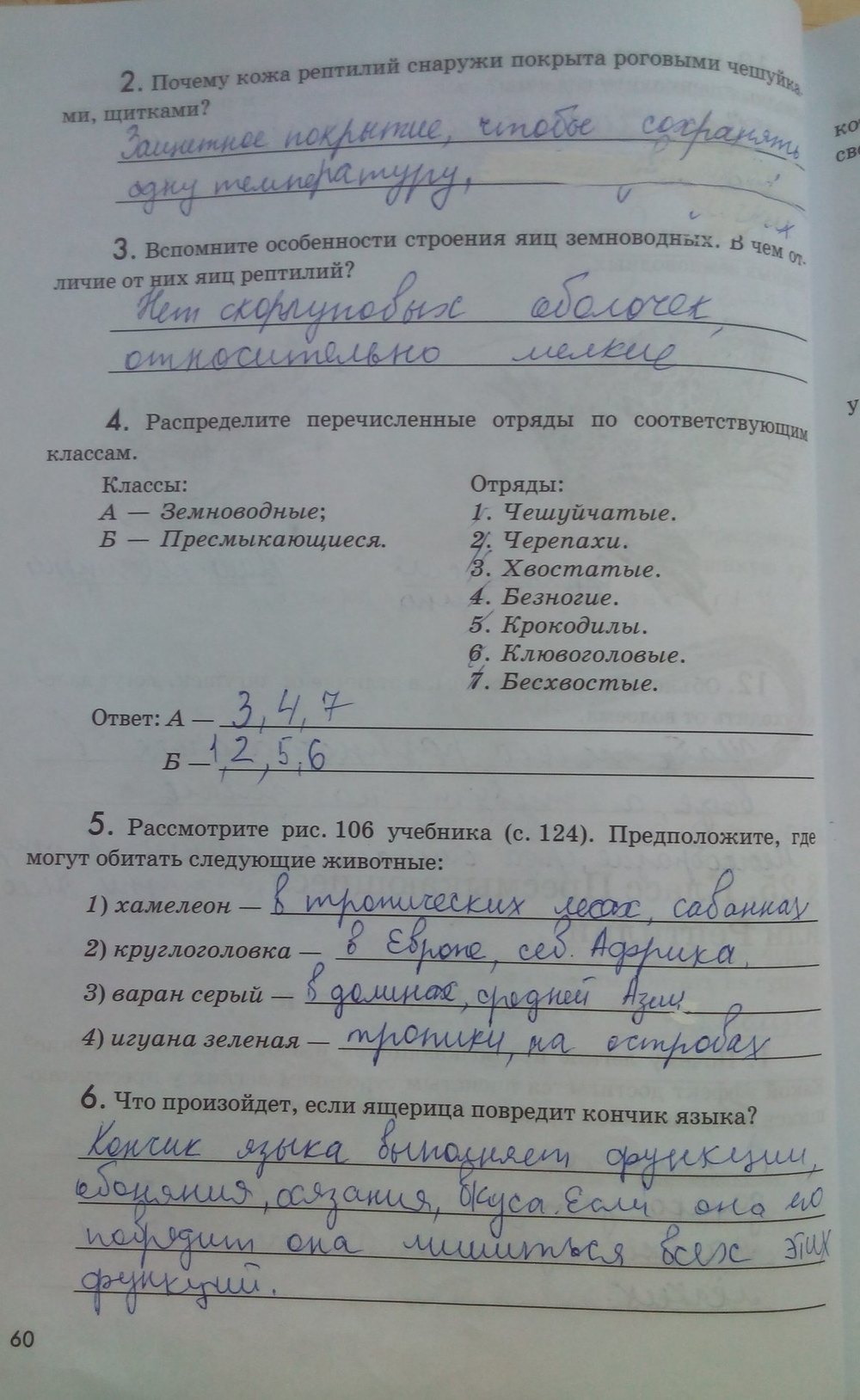 Главная / Готовые домашние задания (ГДЗ) / 7 класс / Биология / Латюшин В. В., Ламехова Е. А. / задание: стр. 60
