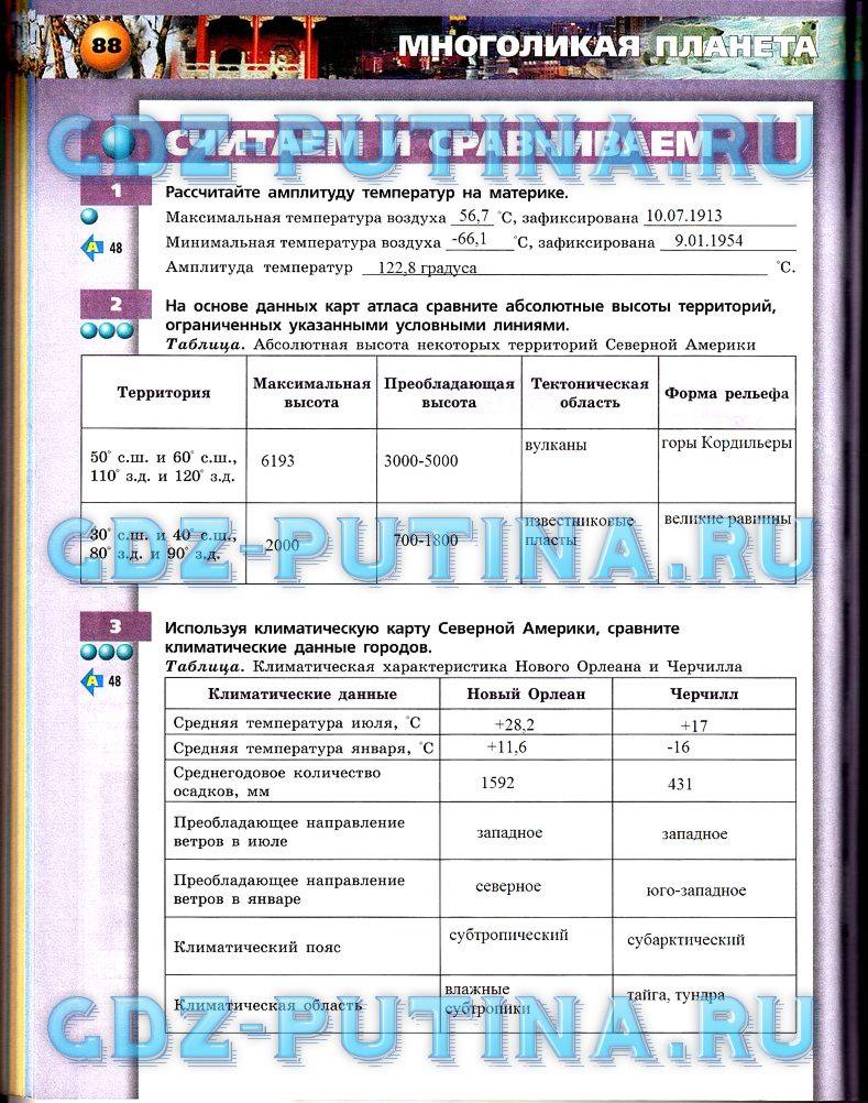Главная / Готовые домашние задания (ГДЗ) / 7 класс / География / Мишняева, Котляр, Банников / задача: 88