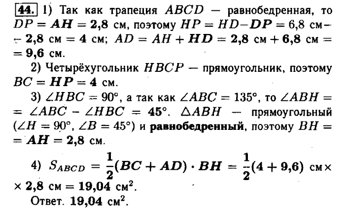 Ответ на Рабочая тетрадь геометрия 8 класс Атанасян Задание: 44