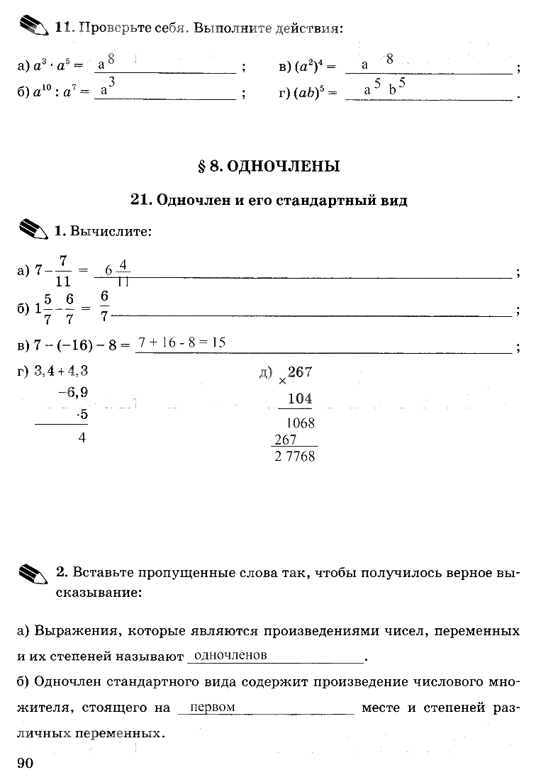Главная / Готовые домашние задания (ГДЗ) / 7 класс / Алгебра / Ю.Н. Макарычев, Т.М. Ерина / задание: стр. 90