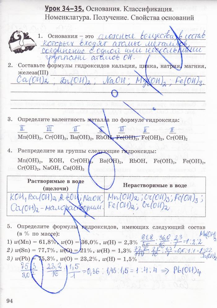 Главная / Готовые домашние задания (ГДЗ) / 8 класс / Химия / Ф.Г. Фельдман, Боровских Т.А. / задача: стр. 94