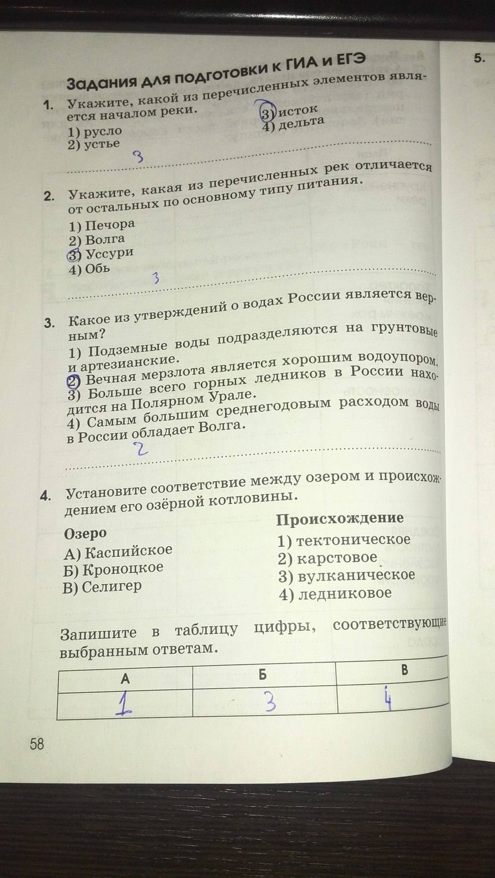 Главная / Готовые домашние задания (ГДЗ) / 8 класс / География / Ким Э.В. / задание: стр. 58