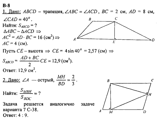 Главная / Готовые домашние задания (ГДЗ) / 8 класс / Геометрия / Б.Г. Зив, В.М. Майлер / C-38 Задание: В-8