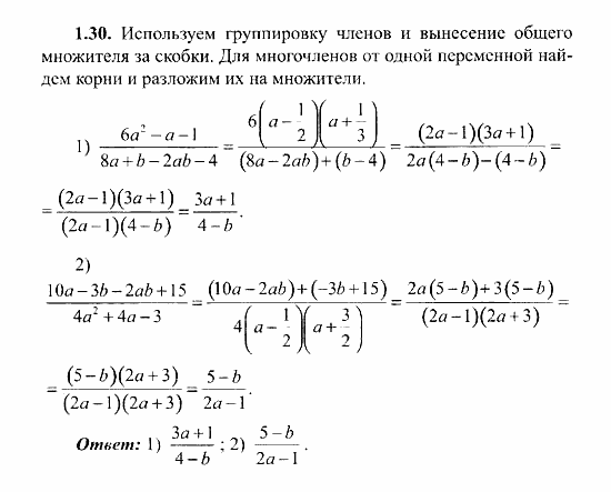 Главная / Готовые домашние задания (ГДЗ) / 9 класс / Алгебра / Кузнецова, Суворова / Раздел II. Задания для второй части экзаменационной работы, Выражения и их преобразования Задание: 1.30