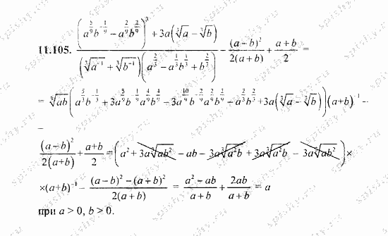 Главная / Готовые домашние задания (ГДЗ) / 9 класс / Алгебра / Галицкий, Гольдман / Свойства степени с рациональным показателем Задание: 11.105