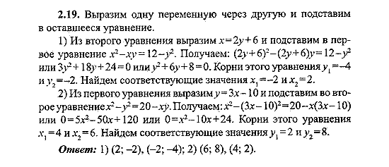 Ответ на Раздел II. Задания для второй части экзаменационной работы, Уравнения и системы уравнений Задание: 2.19