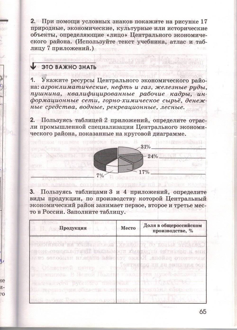 Главная / Готовые домашние задания (ГДЗ) / 9 класс / География / Ким Э.В. Марченко Н.А. Низовцев В.А. / задание: стр. 65