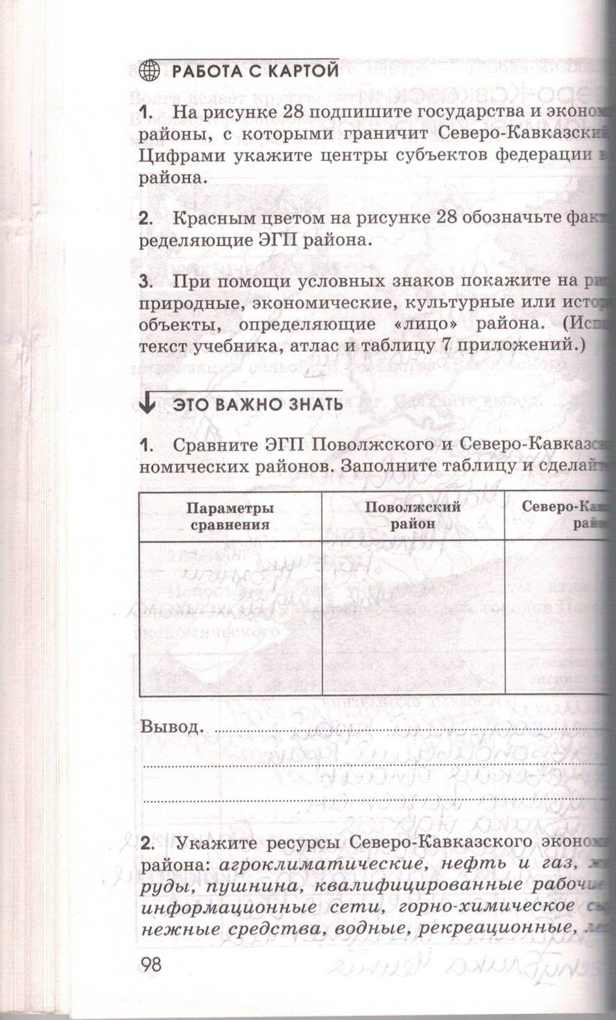 Главная / Готовые домашние задания (ГДЗ) / 9 класс / География / Ким Э.В. Марченко Н.А. Низовцев В.А. / задание: стр. 98
