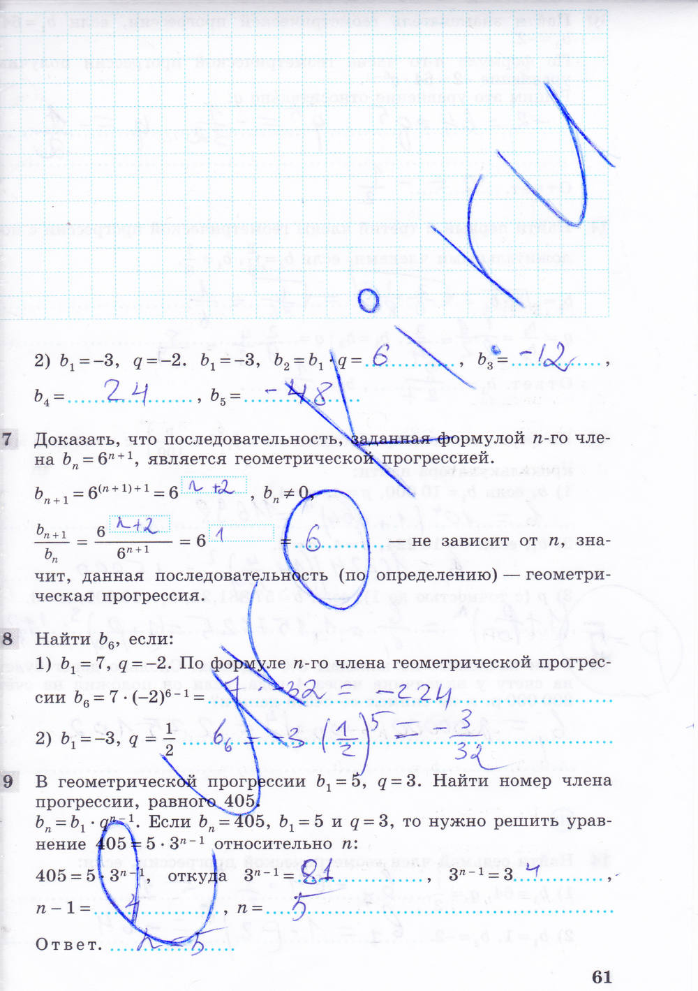 Главная / Готовые домашние задания (ГДЗ) / 9 класс / Алгебра / Ю.М. Колягин Ткачёва М.В. Фёдорова Н.Е. / задание: Стр. 61