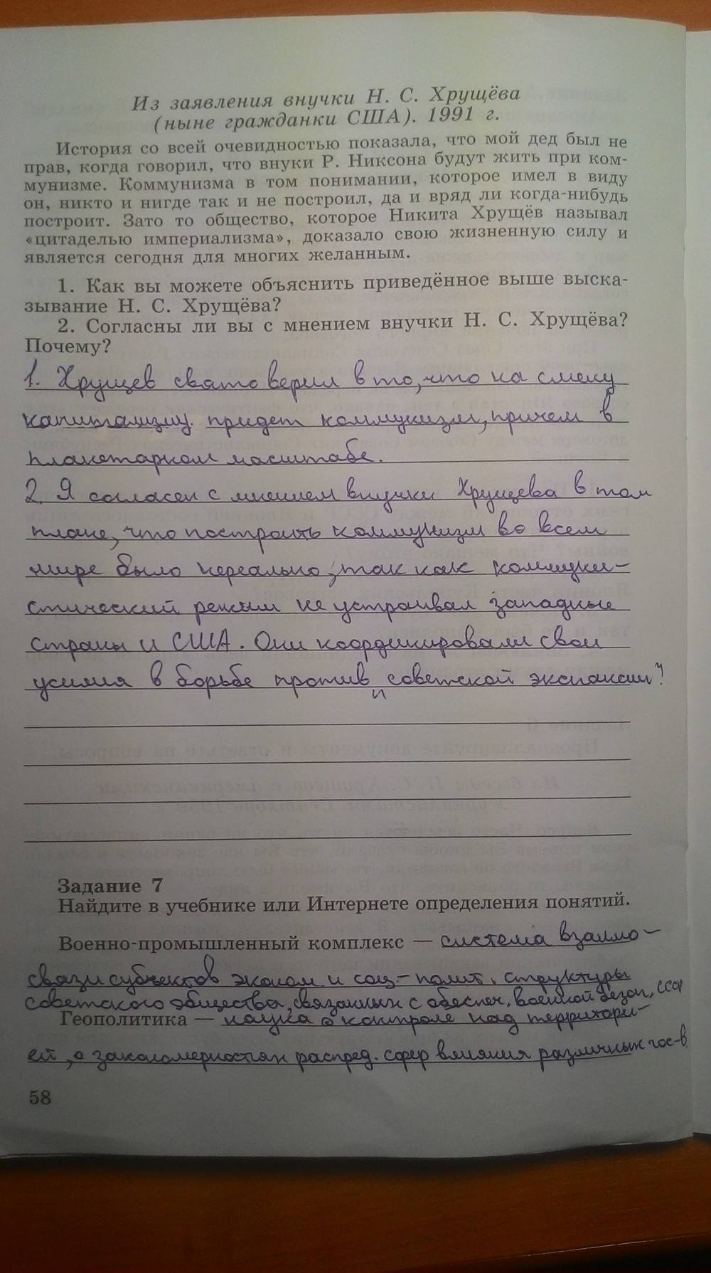 Главная / Готовые домашние задания (ГДЗ) / 9 класс / История / Данилов А. А. Косулина Л. Г. / задание: Стр. 58