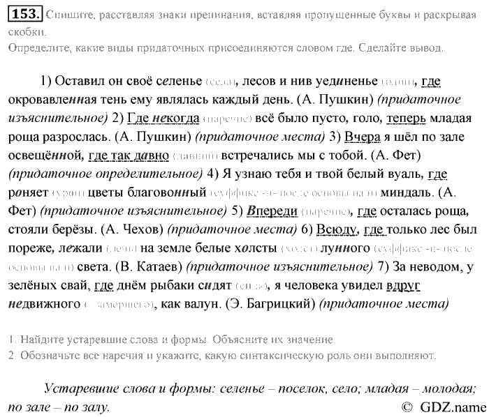 Главная / Готовые домашние задания (ГДЗ) / 9 класс / Русский язык / Разумовская, Львова / задание: 153