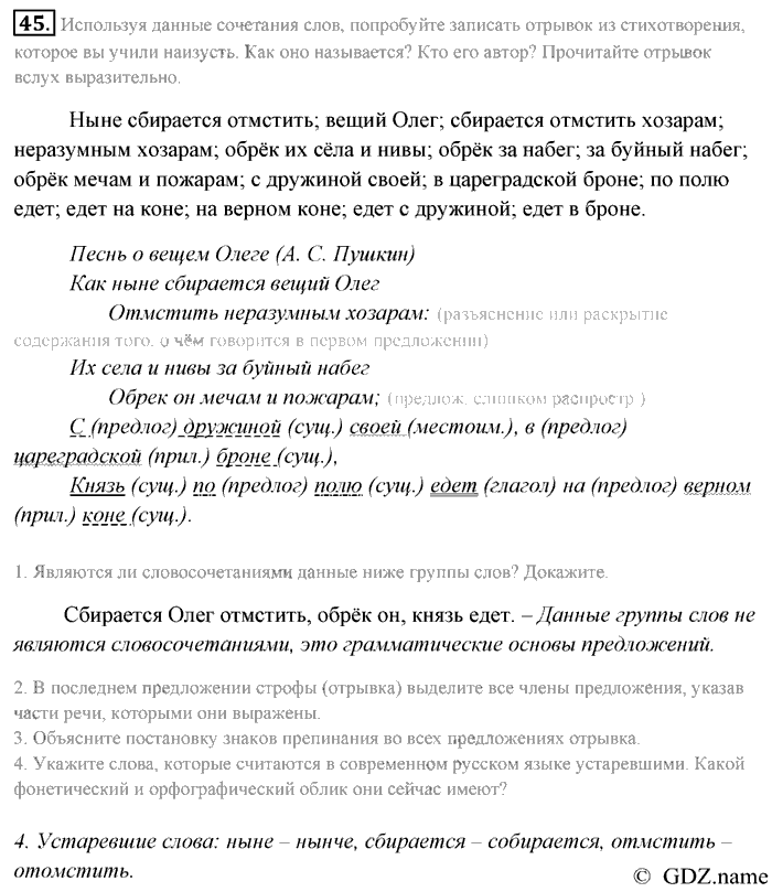 Главная / Готовые домашние задания (ГДЗ) / 9 класс / Русский язык / Разумовская, Львова / задание: 45