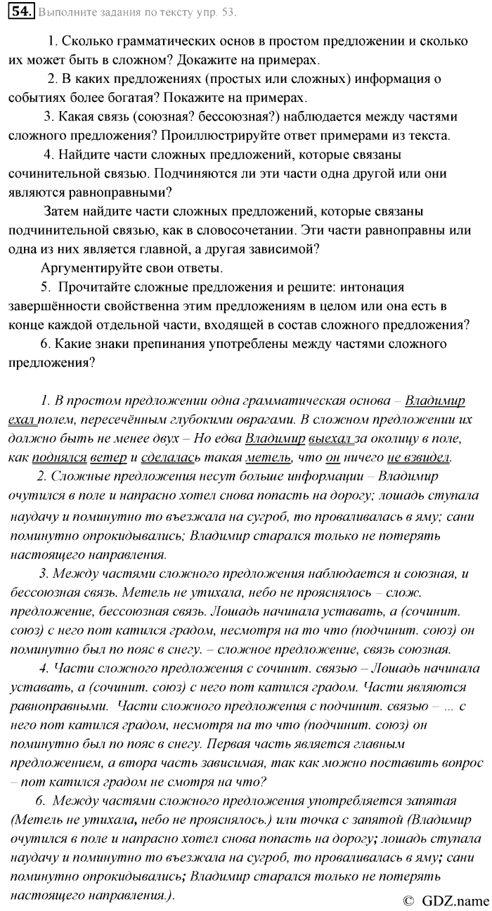 Главная / Готовые домашние задания (ГДЗ) / 9 класс / Русский язык / Разумовская, Львова / задание: 54