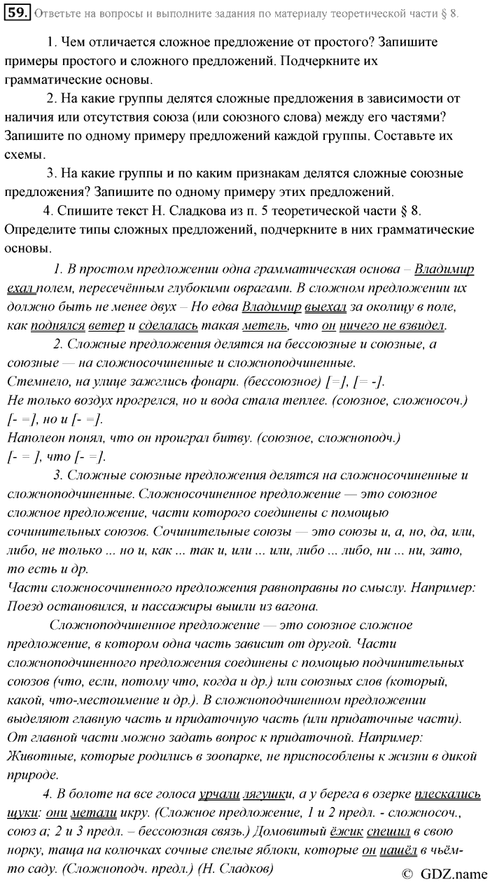 Главная / Готовые домашние задания (ГДЗ) / 9 класс / Русский язык / Разумовская, Львова / задание: 59