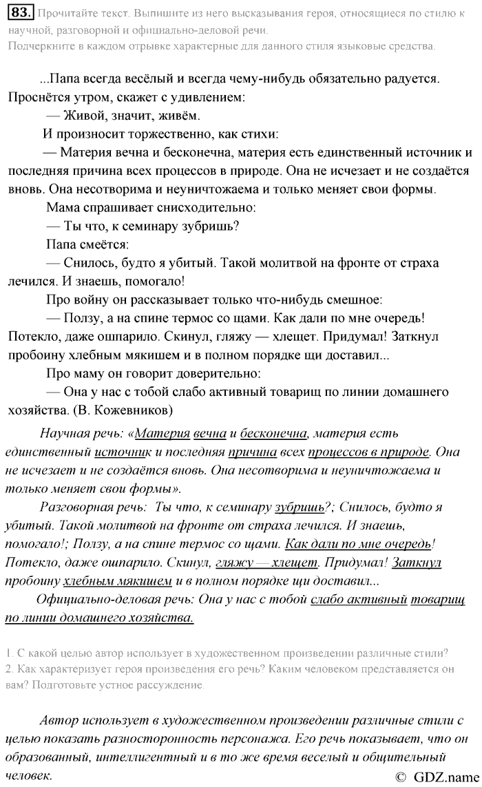 Главная / Готовые домашние задания (ГДЗ) / 9 класс / Русский язык / Разумовская, Львова / задание: 83
