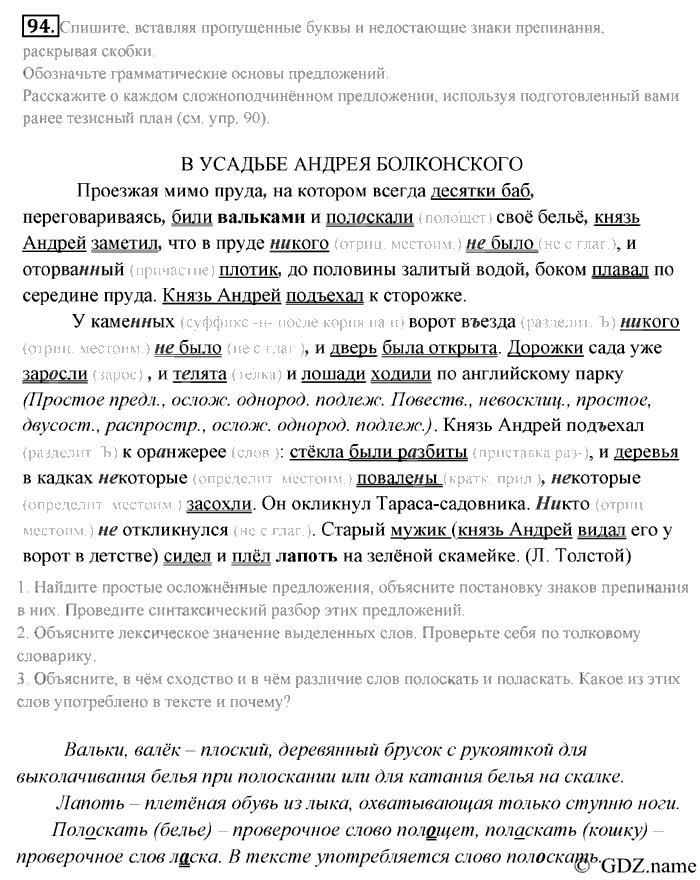 Главная / Готовые домашние задания (ГДЗ) / 9 класс / Русский язык / Разумовская, Львова / задание: 94