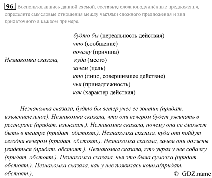 Главная / Готовые домашние задания (ГДЗ) / 9 класс / Русский язык / Разумовская, Львова / задание: 96
