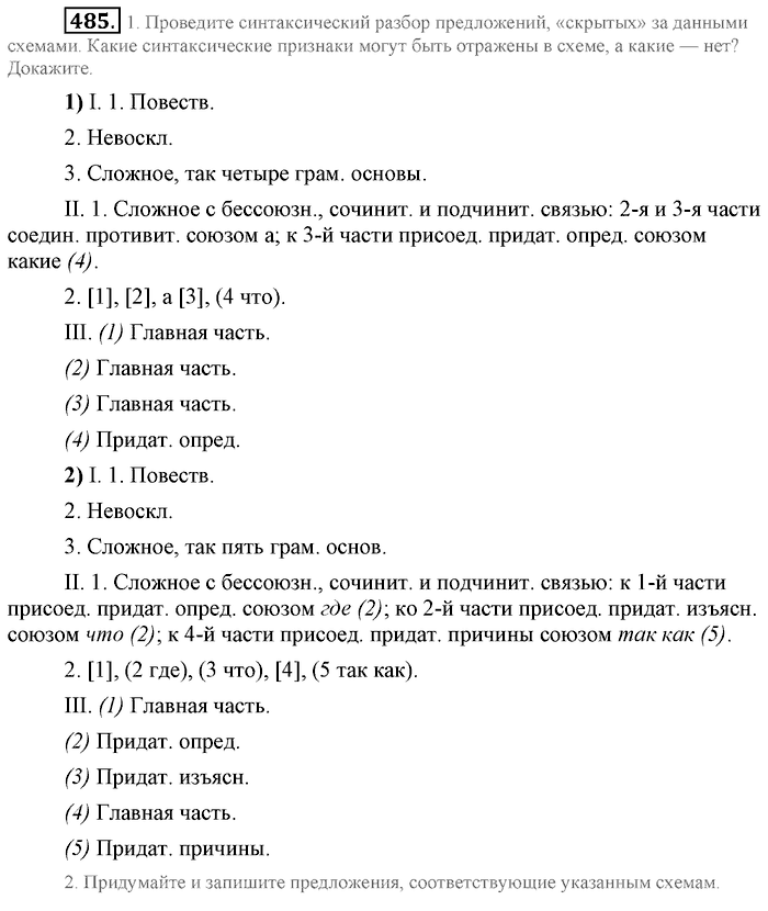 Главная / Готовые домашние задания (ГДЗ) / 9 класс / Русский язык / Львова, Львов / задание: 485