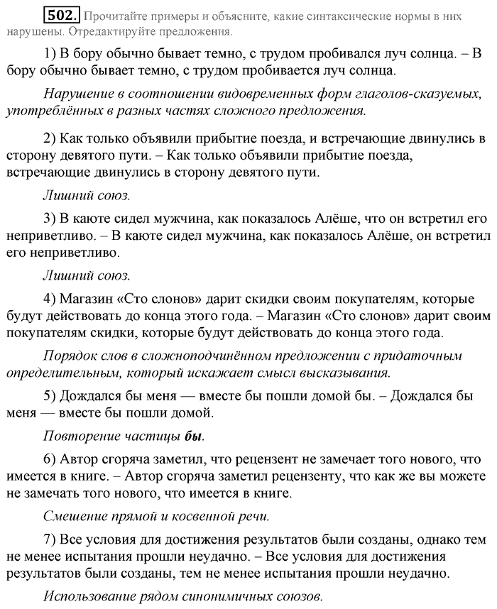 Главная / Готовые домашние задания (ГДЗ) / 9 класс / Русский язык / Львова, Львов / задание: 502