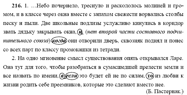 Главная / Готовые домашние задания (ГДЗ) / 9 класс / Русский язык / Тростенцова Л.А. Ладыженская Т.А. / задание: 216
