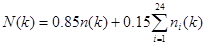 where k denotes an interval in time, i denotes the several frequency bande, and n(k) is the NOY level of the noisiest band. This reflects the “masking” of lesser bands by the noisiest.