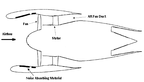 It is self evident that the most desirable way to reduce engine noise would be to eliminate noise generation by changing the engine design. The current state of the art, however, will not provide levels low enough to satisfy expected requirements; thus, it is necessary to attenuate the noise that is generated.