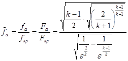 Зависимость между поперечными размерами сопла на срезе fa и степенью расширения газа в сопле ε определяется так:
