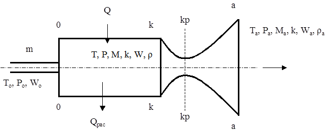 Связь параметров рабочего тела на срезе сопла с параметрами в камере определяется следующей зависимостью: