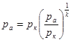 хотя на самом деле течение является изоэнтропным, в данной формуле, так же как и в последующих, следует вместо k писать nиз , причем nиз <k.